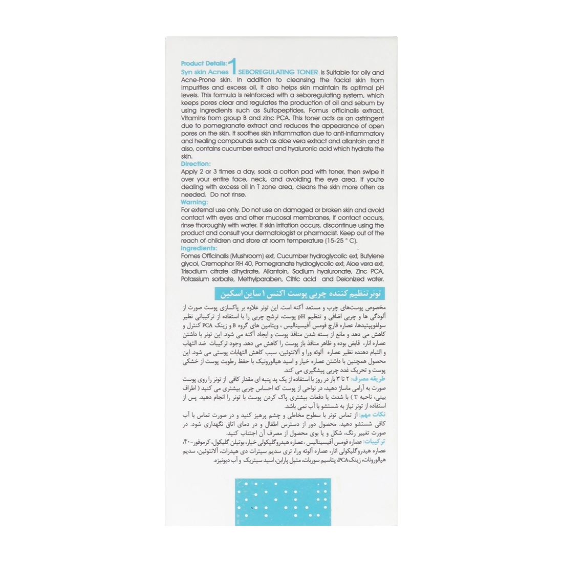 - تونر اکنس 1 ساین اسکین، کنترل کننده میزان چربی سطح پوست