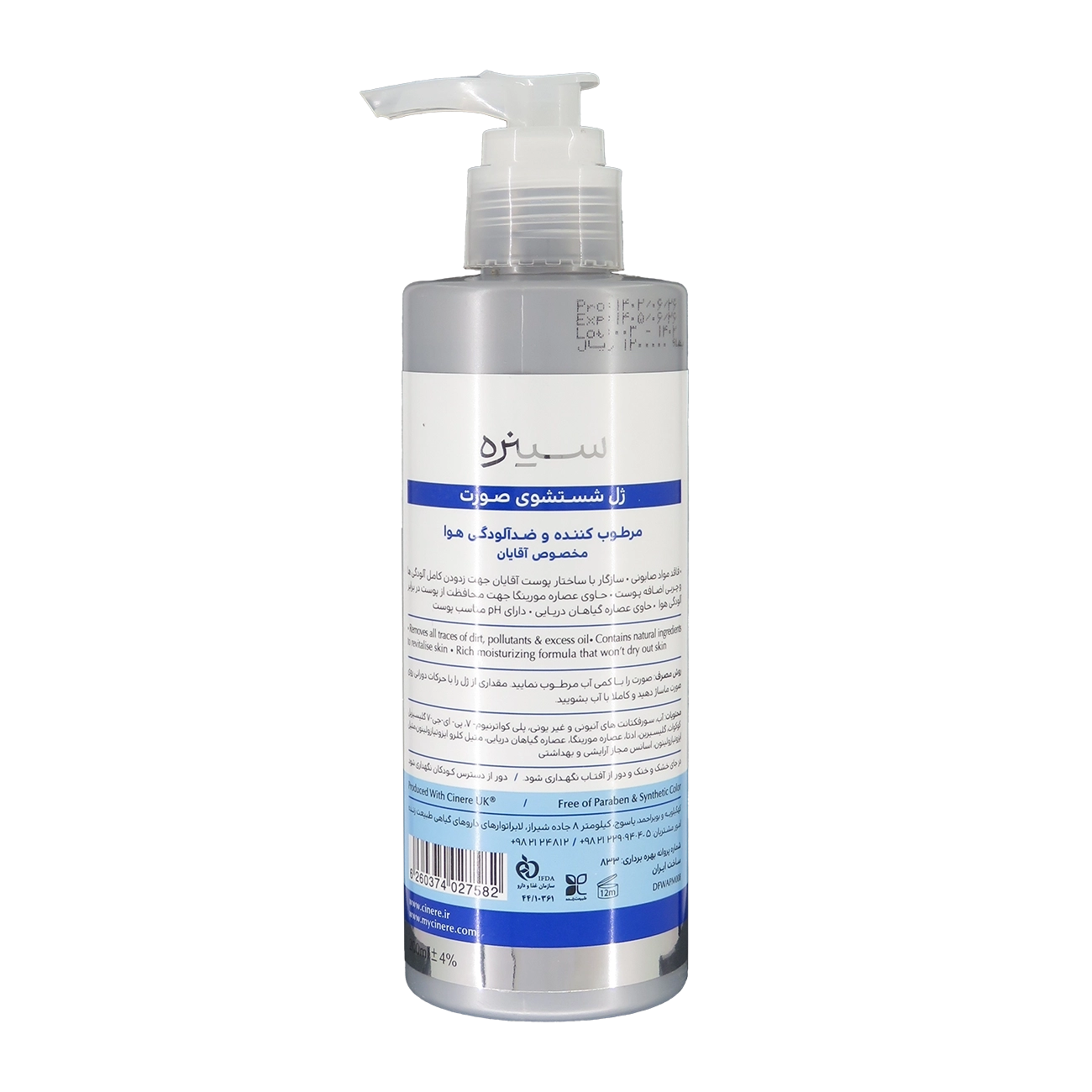 ژل شستشوی صورت آقایان سینره، شوینده‌ای ملایم و فاقد صابون با خاصیت ضد آلودگی هوا، حاوی عصاره مورینگا و سازگار با pH پوست مردان برای پاکسازی روزانه.