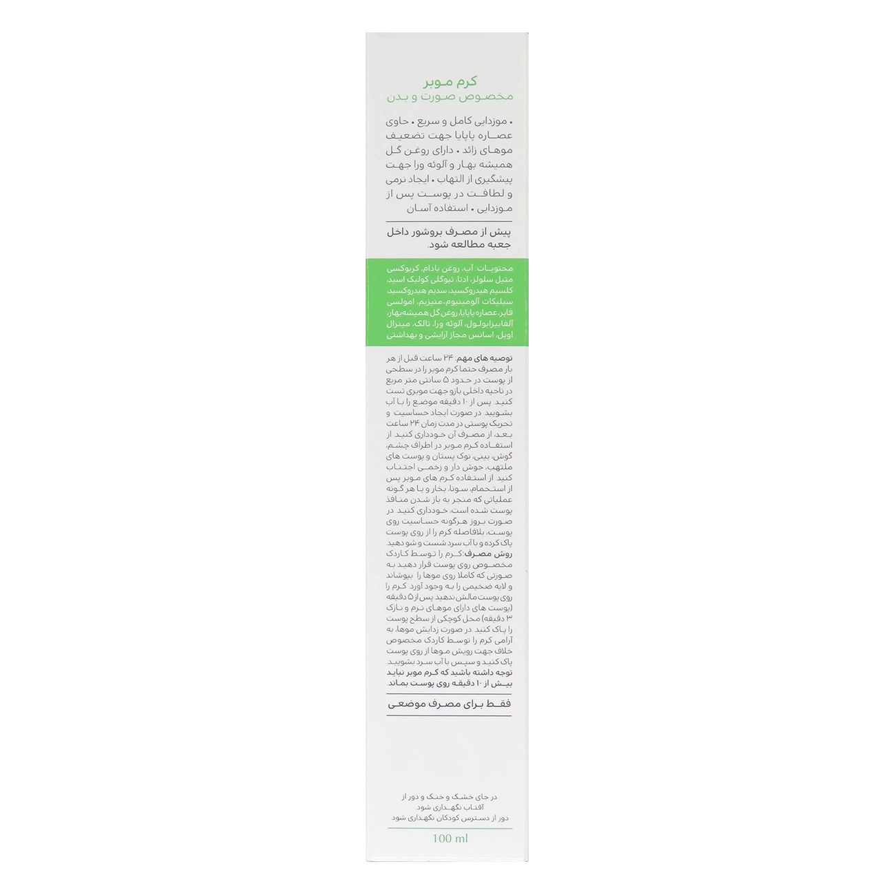 • حاوی عصاره پاپایا جہت تضعیف موهای زائد