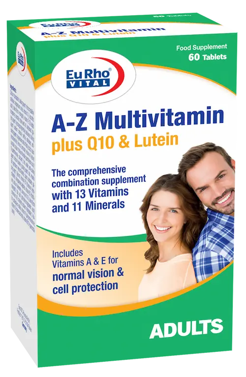 قرص A-Z مولتى ویتامین پلاس یوروویتال حاوی تمامی ویتامینها و مواد معدنی مورد نیاز بههمراه کیوتن و لوتئین است و مصرف آن در کنار رژیم غذایی مناسب به حفظ سلامت عمومی بدن، قلب و چشم کمک میکند.