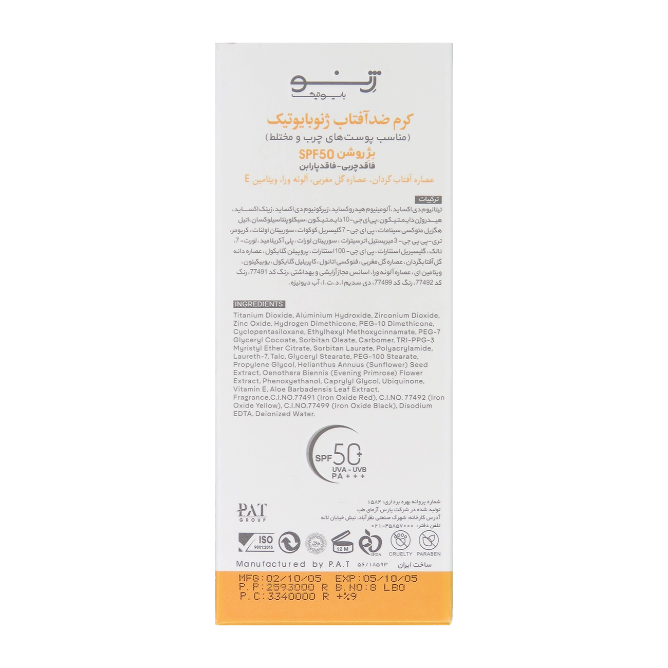 ضد آفتاب رنگی پوست چرب ژنوبایوتیک SPF50 | فاقد چربی و مات‌کننده